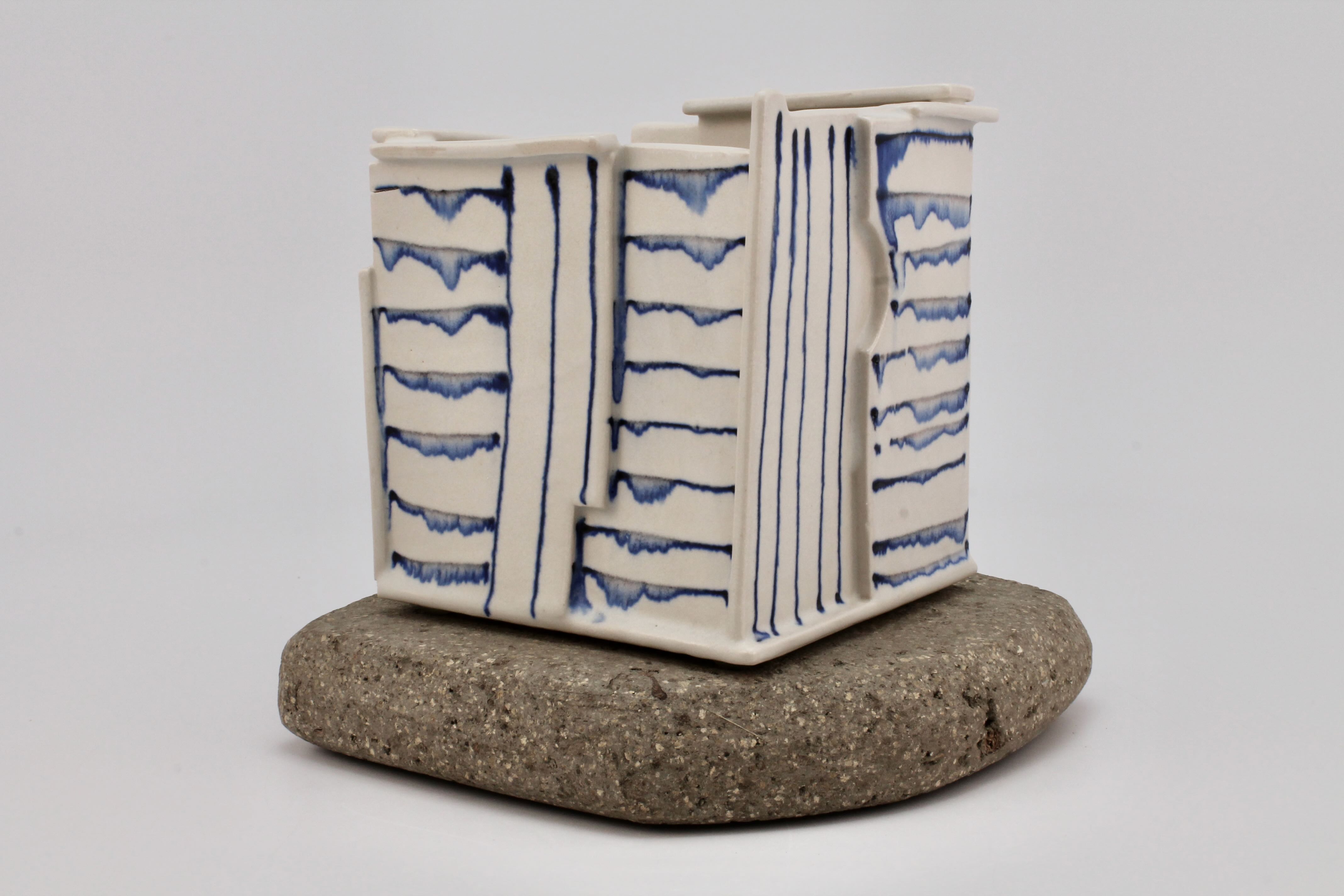 Container on Cement Base (white/blue stripes)